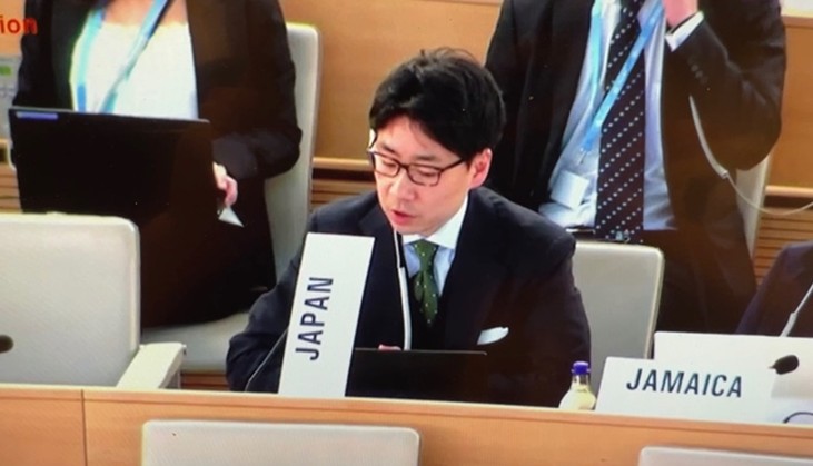 世界保健総会で発言する様子